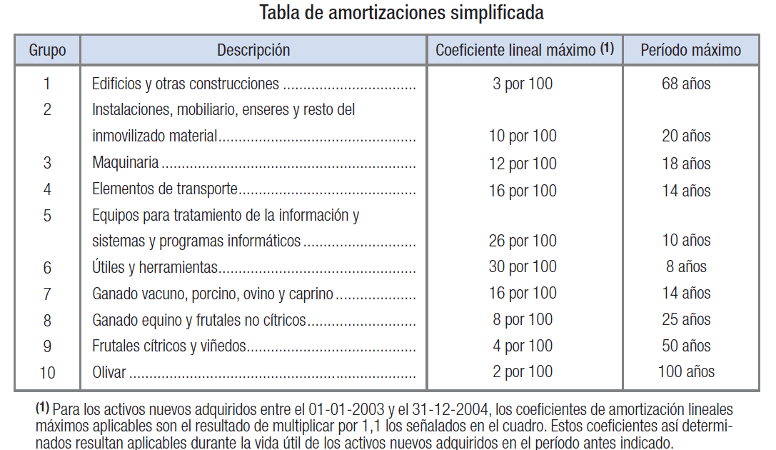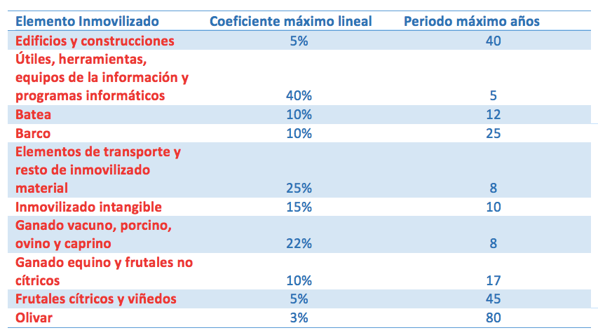 La nueva tabla de amortizacin para este elemento a partir de 2015 establece un coeficiente de 10 10 aos. Tabla de coeficientes de amortizacin lineal. RCRC ha utilizado hasta 31122014 el mtodo de amortizacin de porcentaje constante.